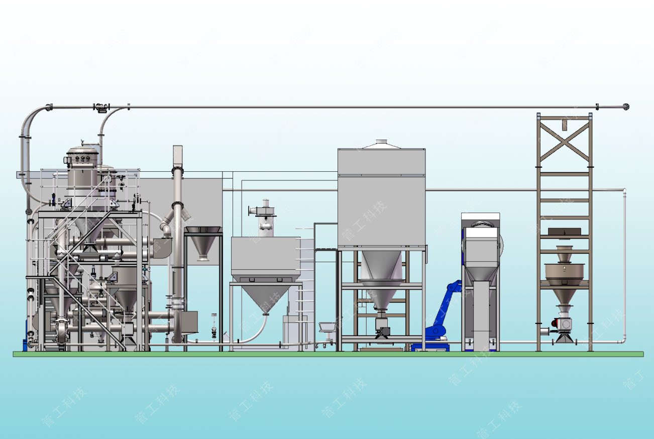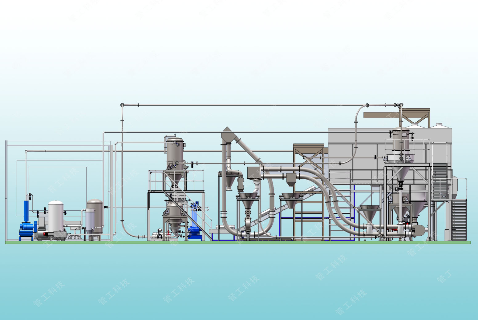 该粉体物料自动化处理系统,自动化程度高,减少人工投入,所有设备和工艺过程均可通过中控室控制系统进行监控和查看,全面掌握整个物料处理过程,降低管理成本。